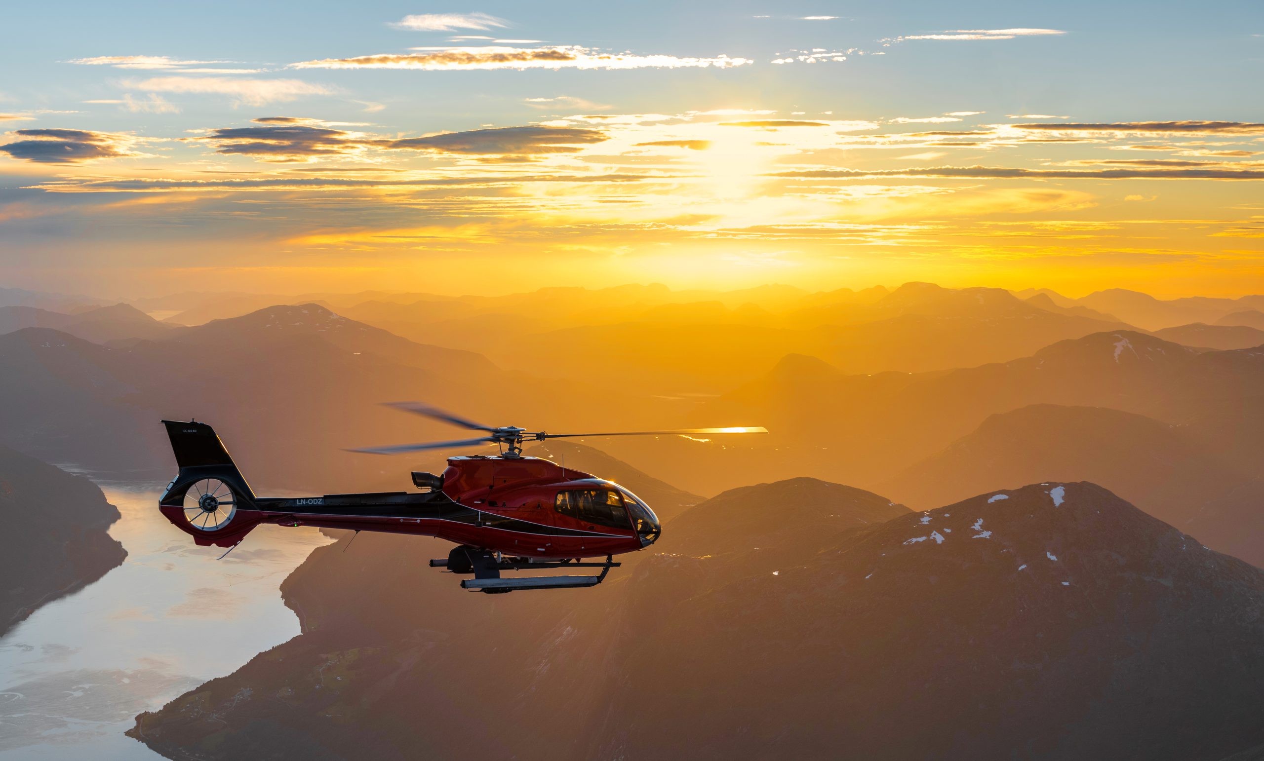Von Flesje Gard erreichen Sie die Stryn-Helikopterbasis in nur wenigen Minuten mit dem Auto. Die Distanz beträgt ungefähr fünf Kilometer, was etwa zehn Fahrminuten entspricht. Fjord Helikopter betreibt moderne Helikopter vom Typ Airbus H125 und H130 ab dem Stryn Heliport. Besonders der H130 ist für Gruppen bis zu sieben Personen geeignet und überzeugt durch geringe Lautstärke und eine Reichweite von mehr als 600 Kilometern. Das bedeutet, dass Sie Ihre Tour flexibel planen können und keine langen Anfahrtswege einplanen müssen.